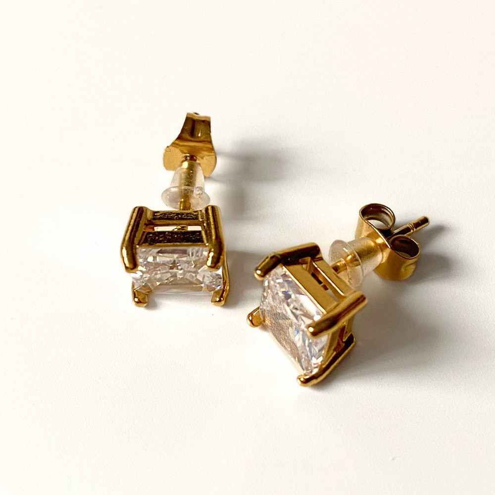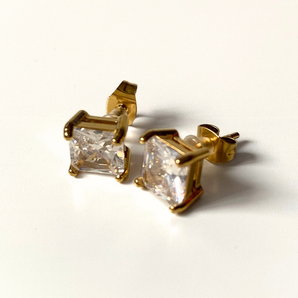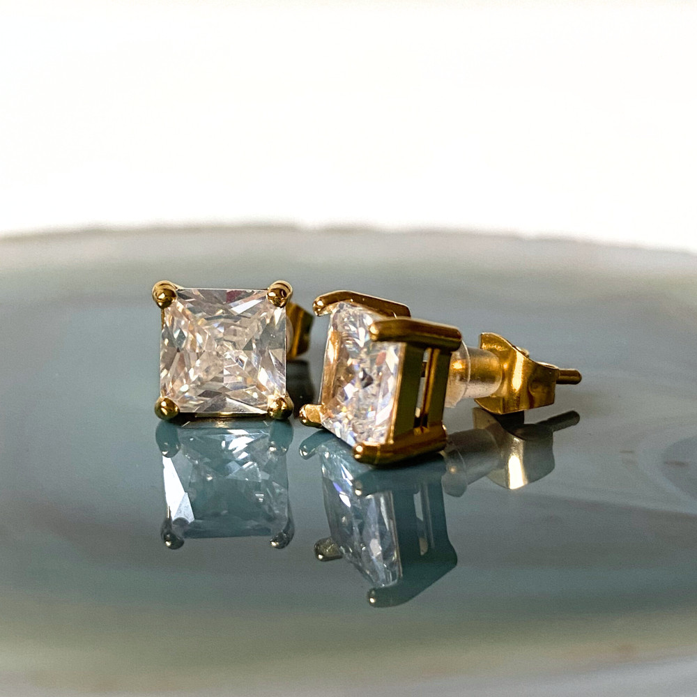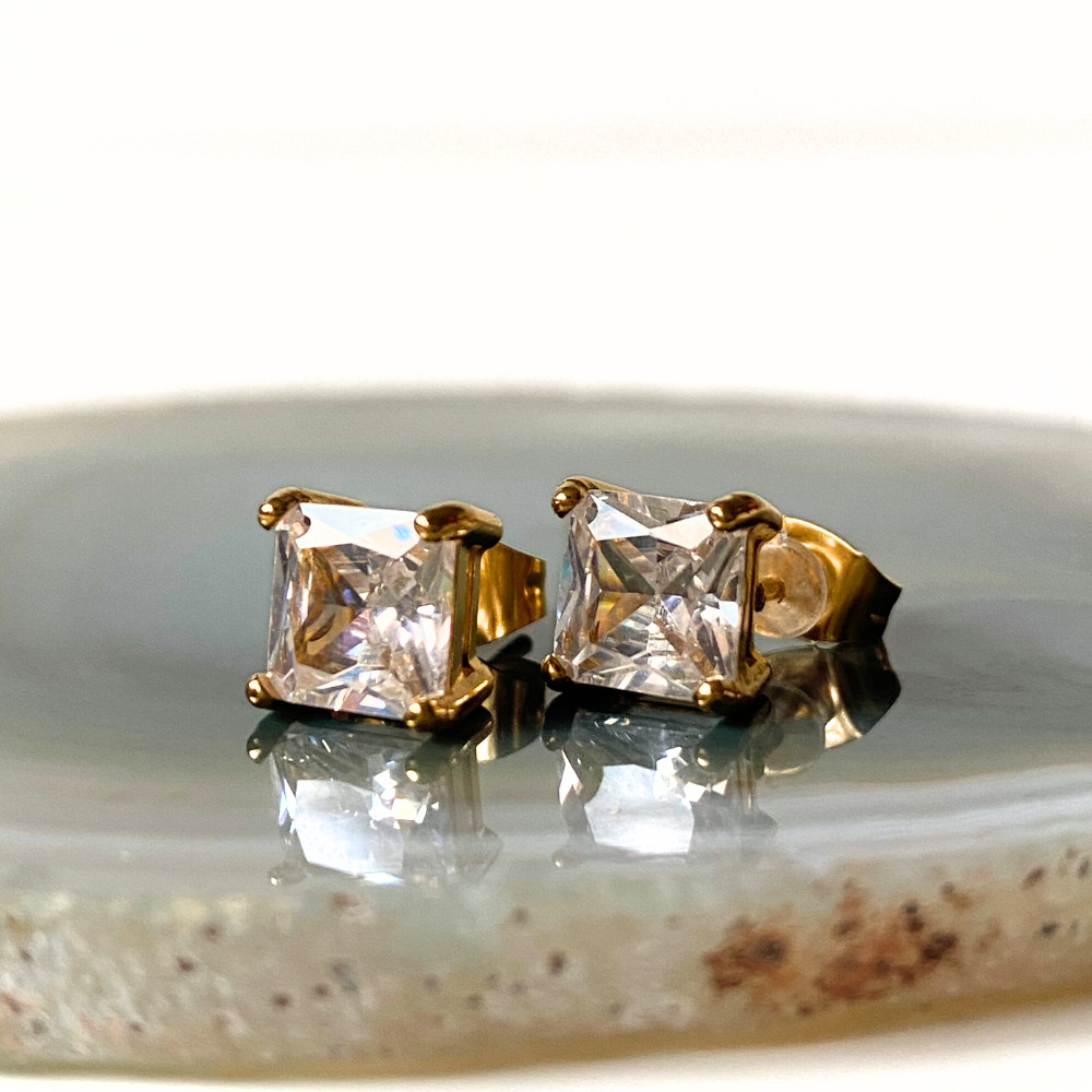 A Crystal Square fülbevaló nemesacélból, arany bevonattal és kristálykővel készül.