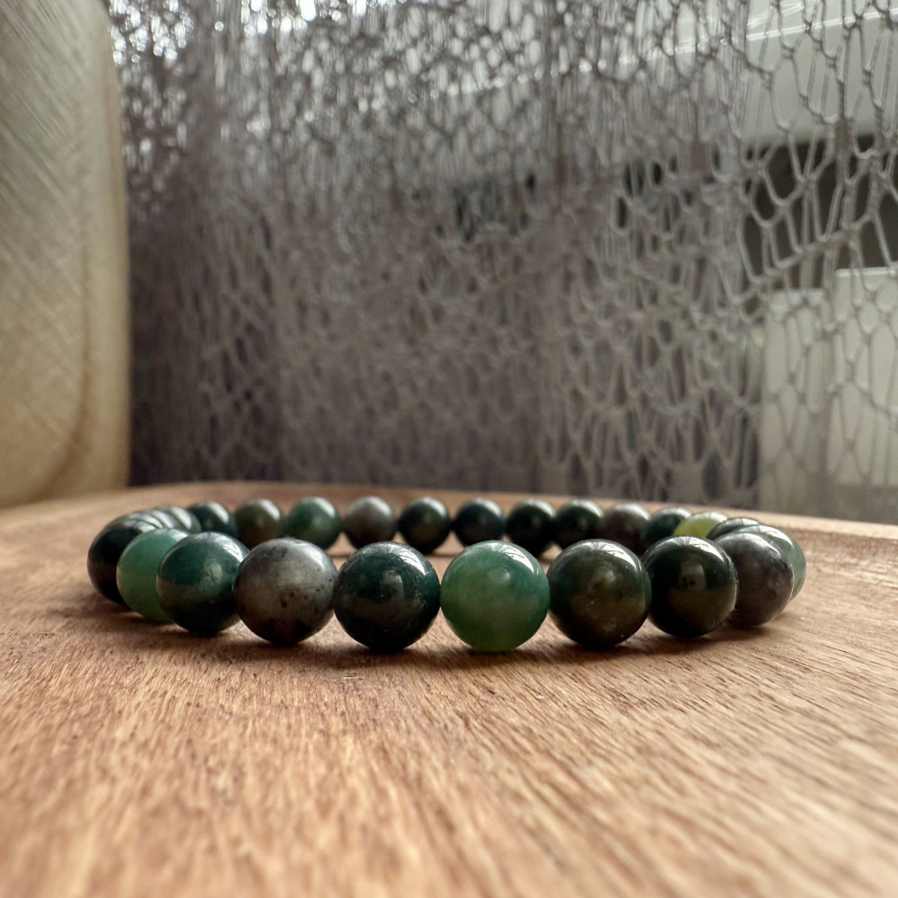 - valódi mohaachát és larvikit ásványgyöngyökből készült férfi karkötő