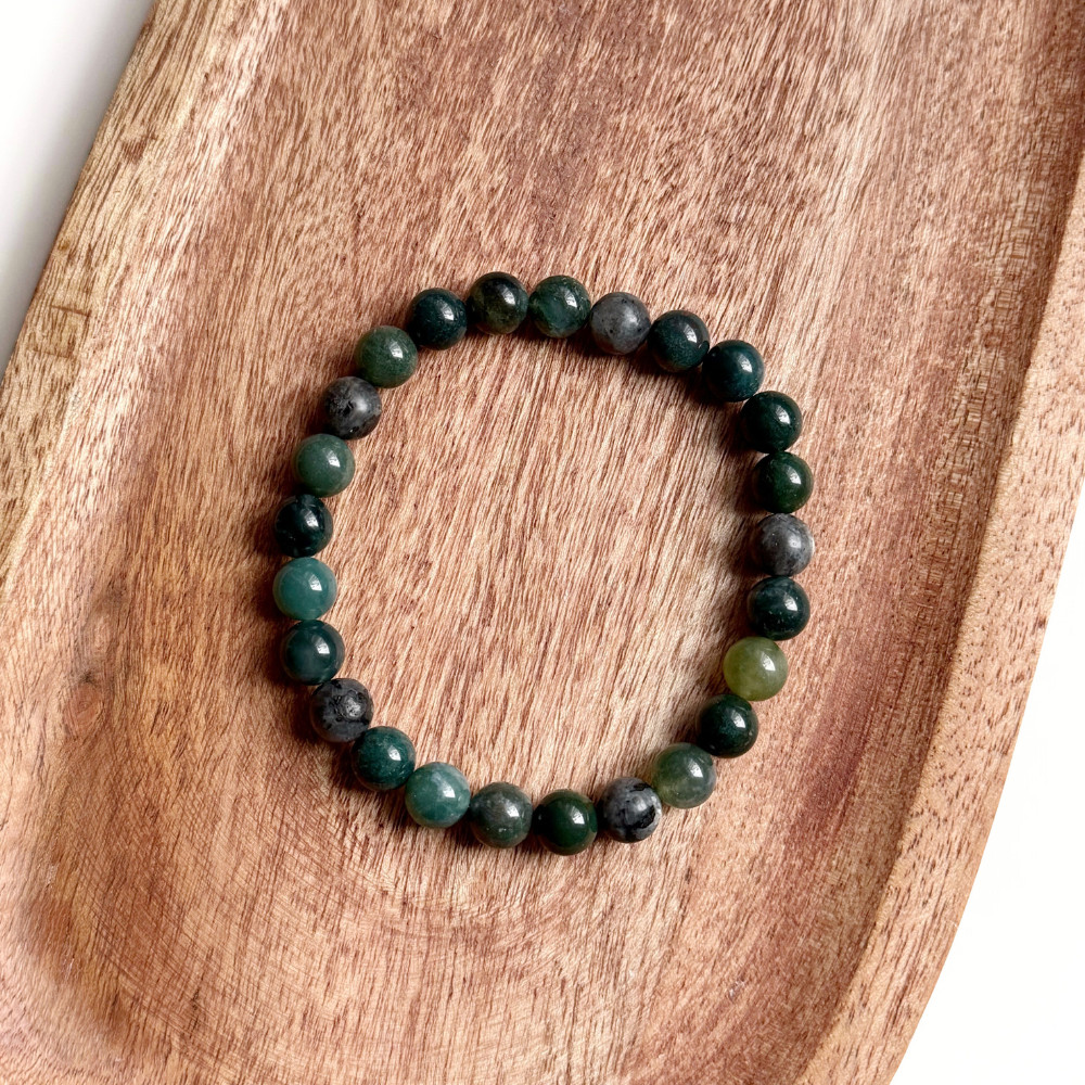 Forest Core – mohaachát & larvikit férfi ásvány karkötő