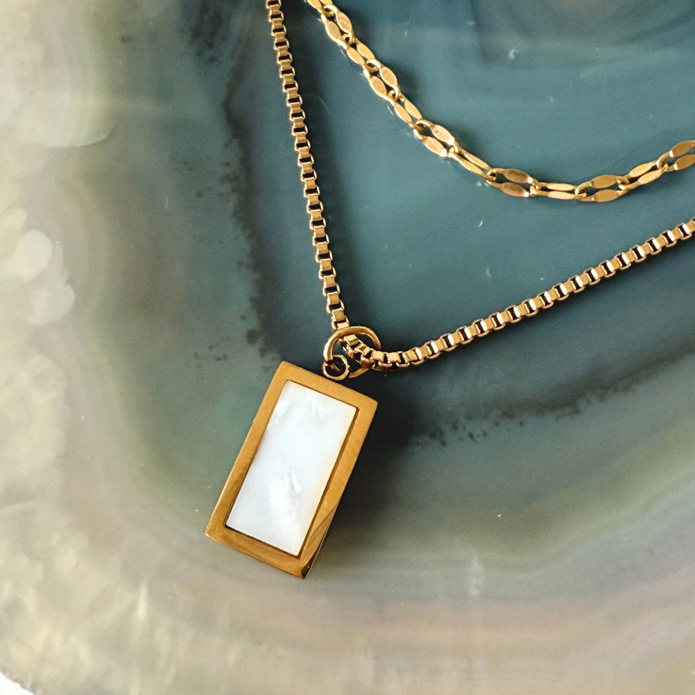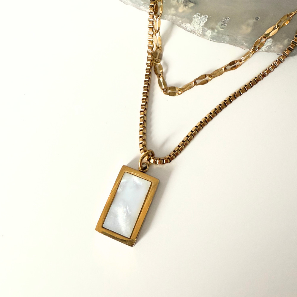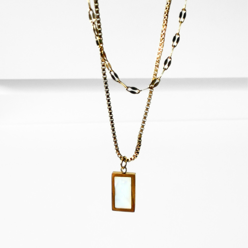 Az Ivory Frame nyaklánc nemesacélból, arany bevonattal és fehér zománccal készül.