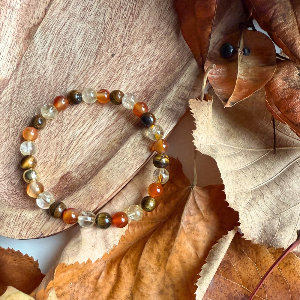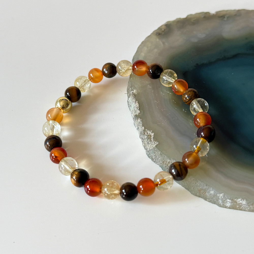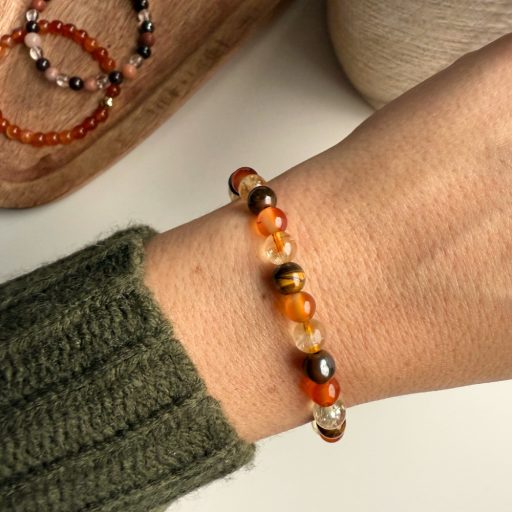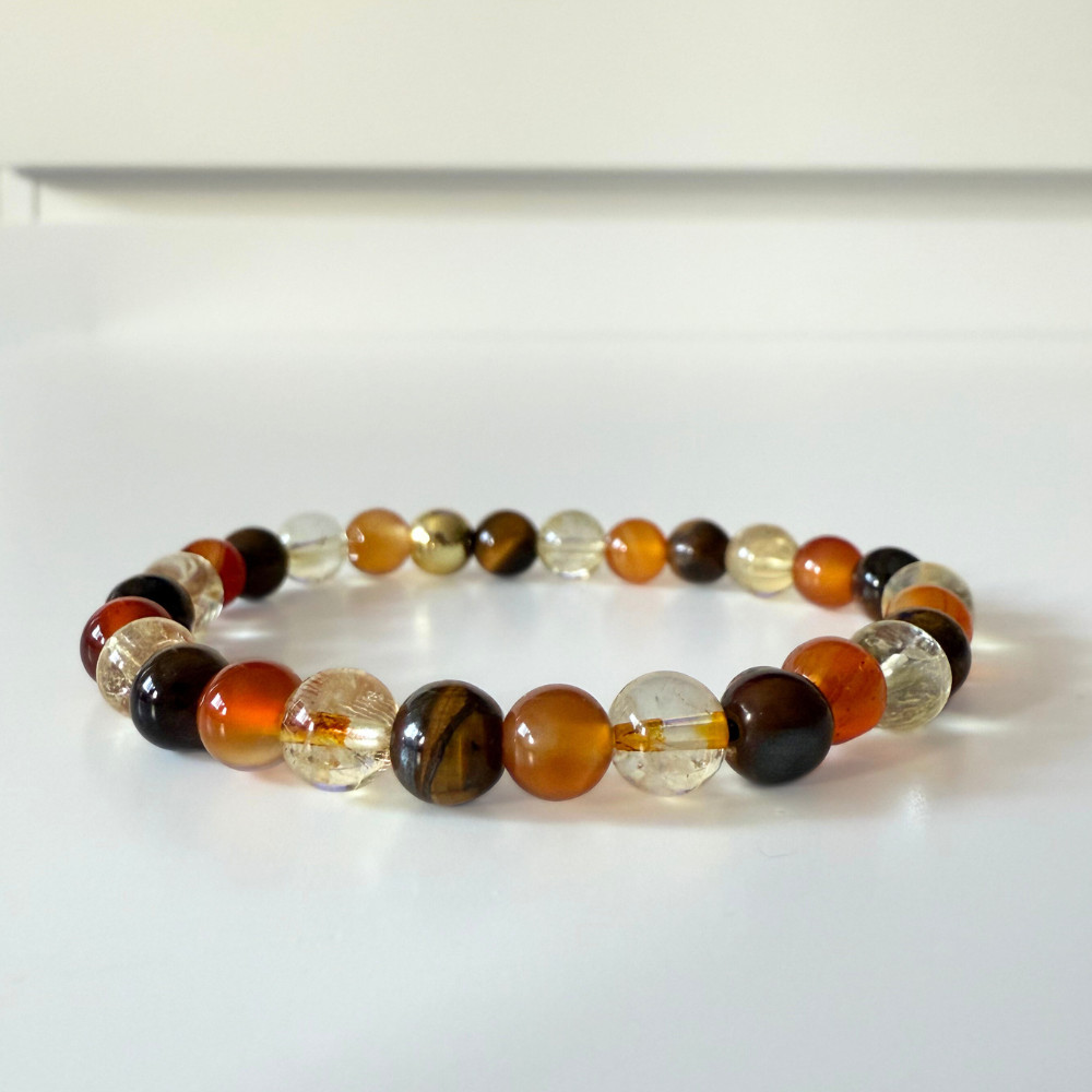 - valódi citrin, karneol és tigrisszem ásványgyöngyökből, kézzel fűzött karkötőt