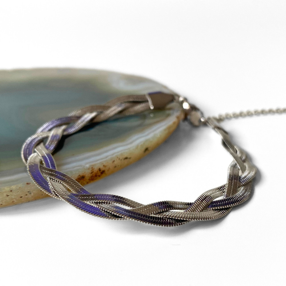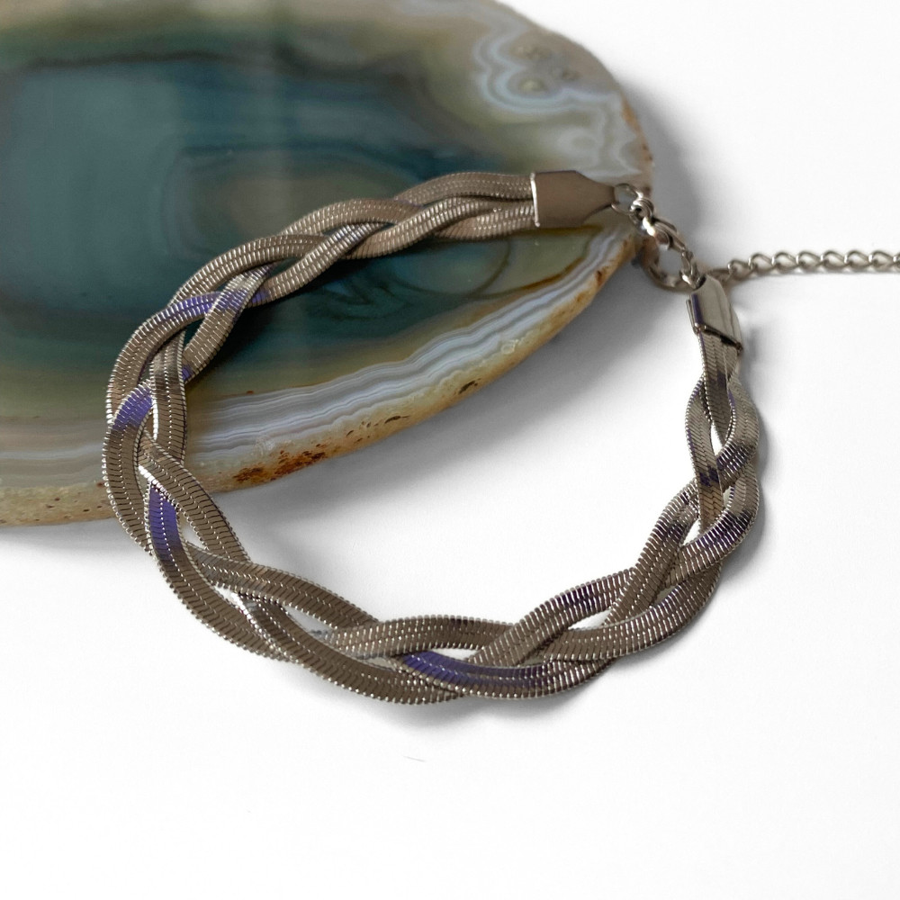 A fonott, csavart hatású felület miatt a karkötő minden mozdulatnál másképp fogja a fényt, ettől lesz élő, dinamikus, mégis letisztult.